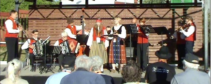 ![]() Yläneen pelimannit Kaustisilla 2014. Vuonna 2015 satoi sen verran rankasti neljällä keikallamme, ettei hyviä ja aurinkoisia kuvia saatu. |